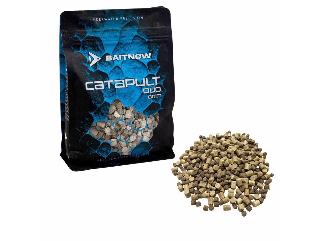 Catapult Duo Pellets 8 mm jsou kombinací dvou typů pelet, které společně vytvářejí účinné krmné místo. Směs světlých, rychle pracujících partiklových pelet a tmavých, vysokoproteinových pelet s vyšší stabilitou pomáhá ryby nejen rychle přilákat, ale také je udržet v krmném místě po delší dobu.