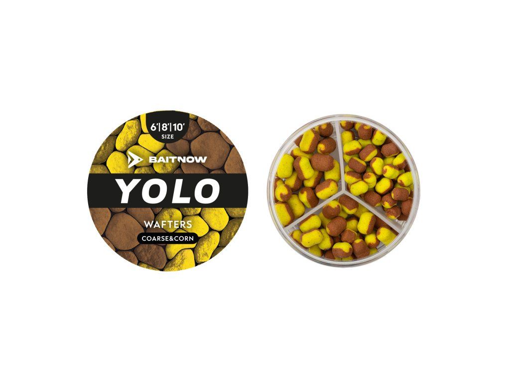 YOLO Wafters Yellow & Bronze Coarse & Corn jsou dvoubarevné vyvážené nástrahy navržené pro lov na method feeder. Kombinace žluté a bronzově hnědé barvy vytváří přirozený vzhled připomínající potravu ryb a zároveň zajišťuje dobrou viditelnost nástrahy na dně.