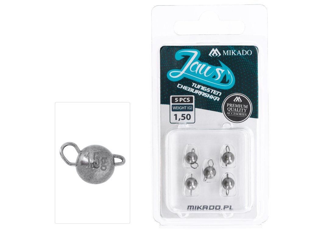 Sada wolframových čeburašek MIKADO JAWS je určena pro měkké nástrahy a návazce s kloubovým spojem. Díky vyšší hustotě wolframu jsou čeburašky menší než olověné, což zlepšuje nához i vedení nástrahy při různých technikách přívlače.