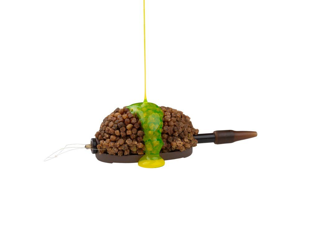 Po kontaktu s vodou se tekutina postupně uvolňuje z krmítka a vytváří silnou pachovou stopu, která pomáhá rybám rychle lokalizovat krmné místo. Světle zelená barva zároveň zvyšuje vizuální efekt kolem krmítka a podporuje aktivitu ryb v lovném prostoru.
