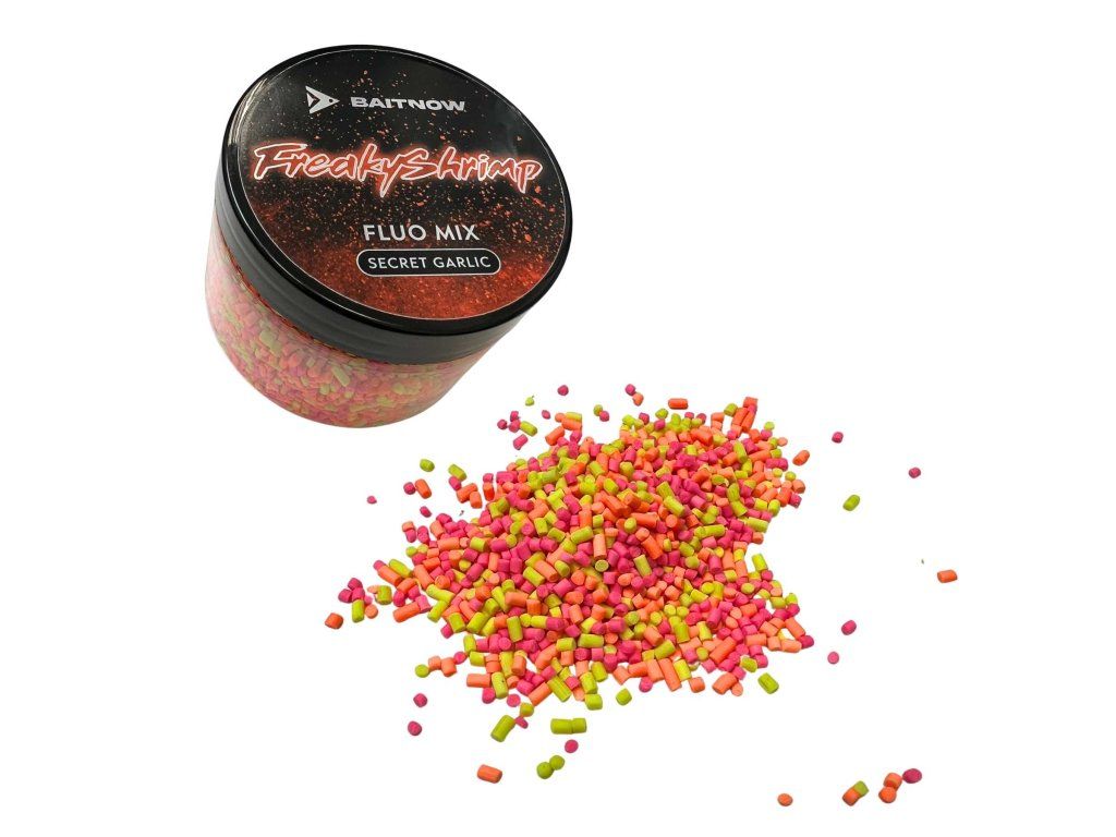 Baitnow Fluo Mix Freaky Shrimp | Tajný Česnek | 150 ml | 1 ks