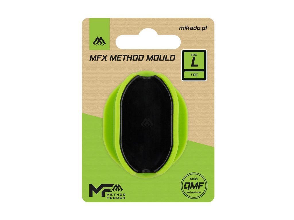 Formička pro krmítka MFX velikosti L slouží k rychlé a přesné přípravě náplně do method feeder krmítek. Umožňuje rovnoměrné stlačení pelet nebo krmné směsi, díky čemuž krmítko pracuje správně a nástraha je vždy ideálně prezentovaná.