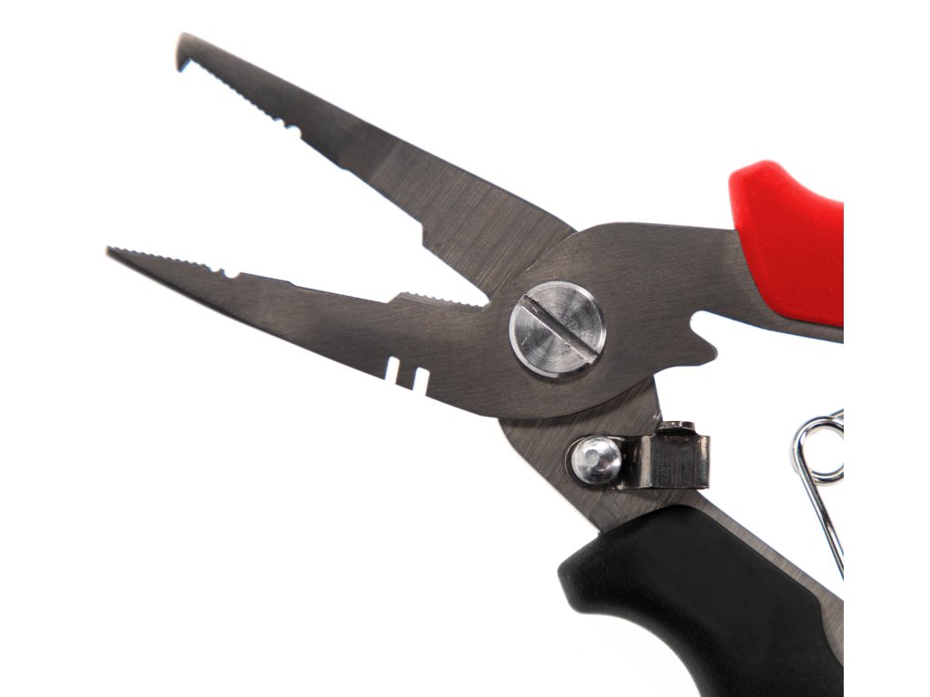 Speciální multifunkční kleště na stříhání šnůry, vlasců, fluoše, olova i všeho možného dalšího, k vytahování háčků a rozdělávání kroužků (split rings) a vyměňování háčků, v luxusním provedení a z odolné oceli! Ideální nástroj pro každého rybáře lovícího dravce, který chce upravit woblery, třpytky a jiné umělé nástrahy pohodlně a bez rizika poškození prstů či výbavy.