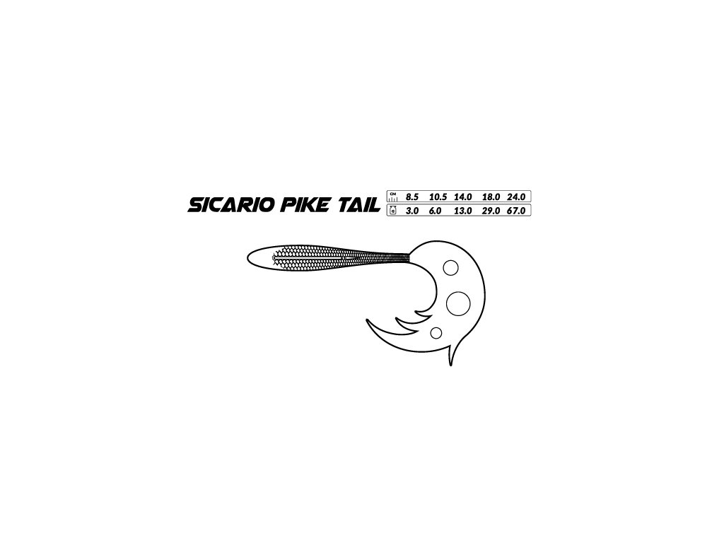 Sicario Pike Tail je mimořádně účinná měkká nástraha s realistickým vzhledem, intenzivní akcí ocásku a výrazným chvěním těla, které spolehlivě provokuje dravce k útoku. Menší velikosti lákají okouny a candáty, větší jsou ideální pro lov štik.