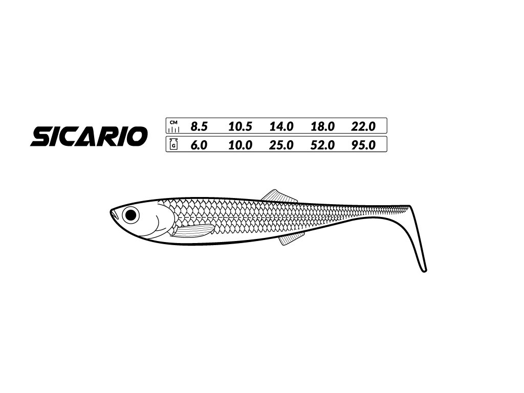 Sicario kopyta jsou vysoce účinné měkké nástrahy s realistickým vzhledem, výraznou akcí ocásku a intenzivním chvěním celého těla, které spolehlivě provokuje dravce k záběru. Díky své univerzálnosti jsou ideální pro lov okounů, candátů i štik.