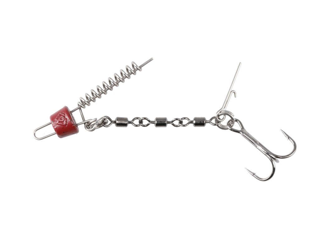 Moderní stinger systém se zavrtávacím šroubem zajišťuje mimořádně pevné a spolehlivé uchycení nástrahy. Konstrukce z kvalitních obratlíků umožňuje volný pohyb a minimalizuje kroucení návazce při vedení nástrahy.