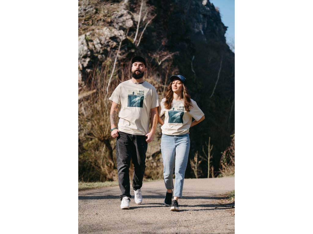 Extra pohodlné béžové tričko v těžší gramáži ti vždycky připomene, že tvůj každodenní cíl u vody je BIGMAMA. Tričko je lehce oversized.